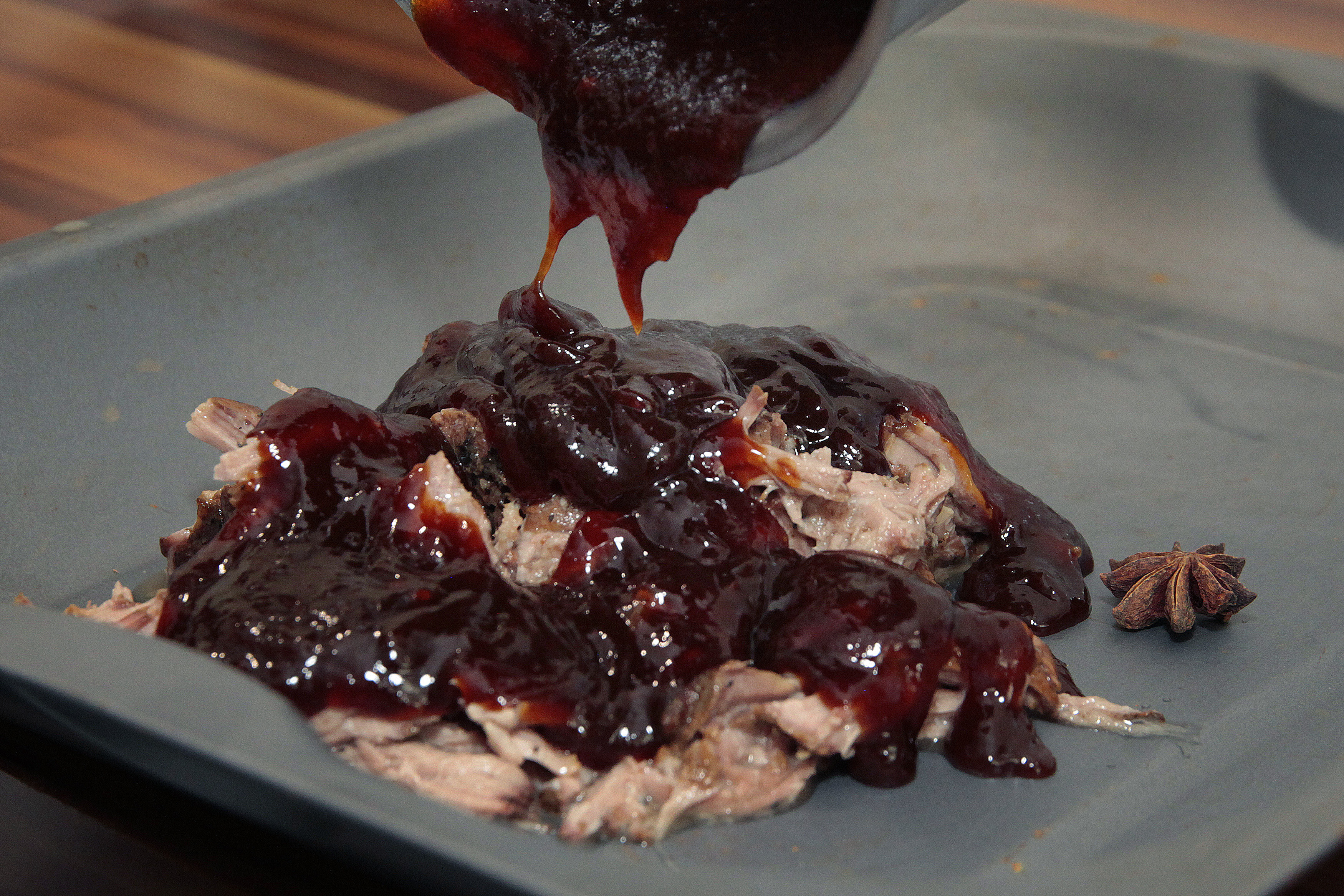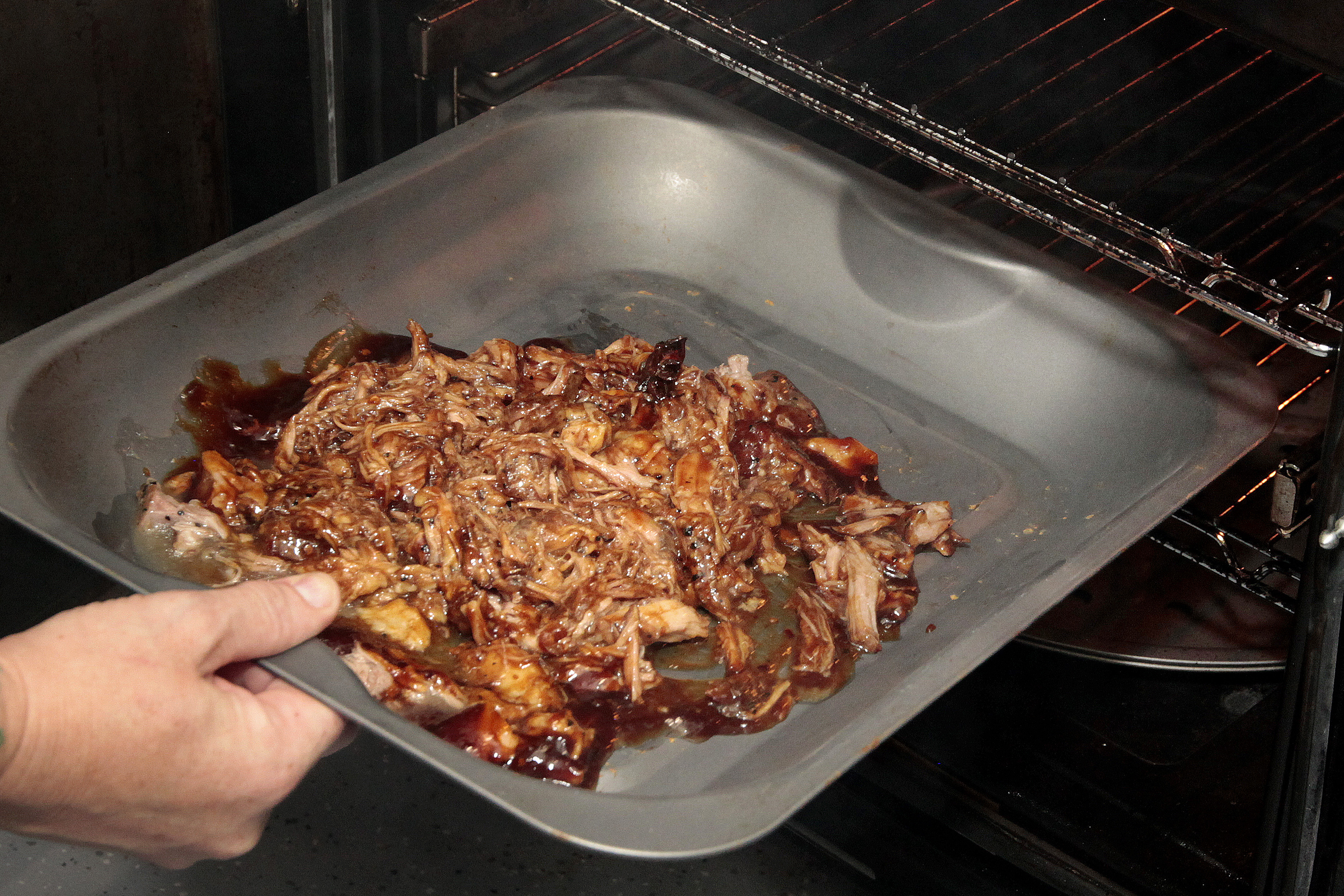 Cover the shredded meat in the teriyaki sauce, mixing through well so it moistens the meat well. Add the smoked paprika.